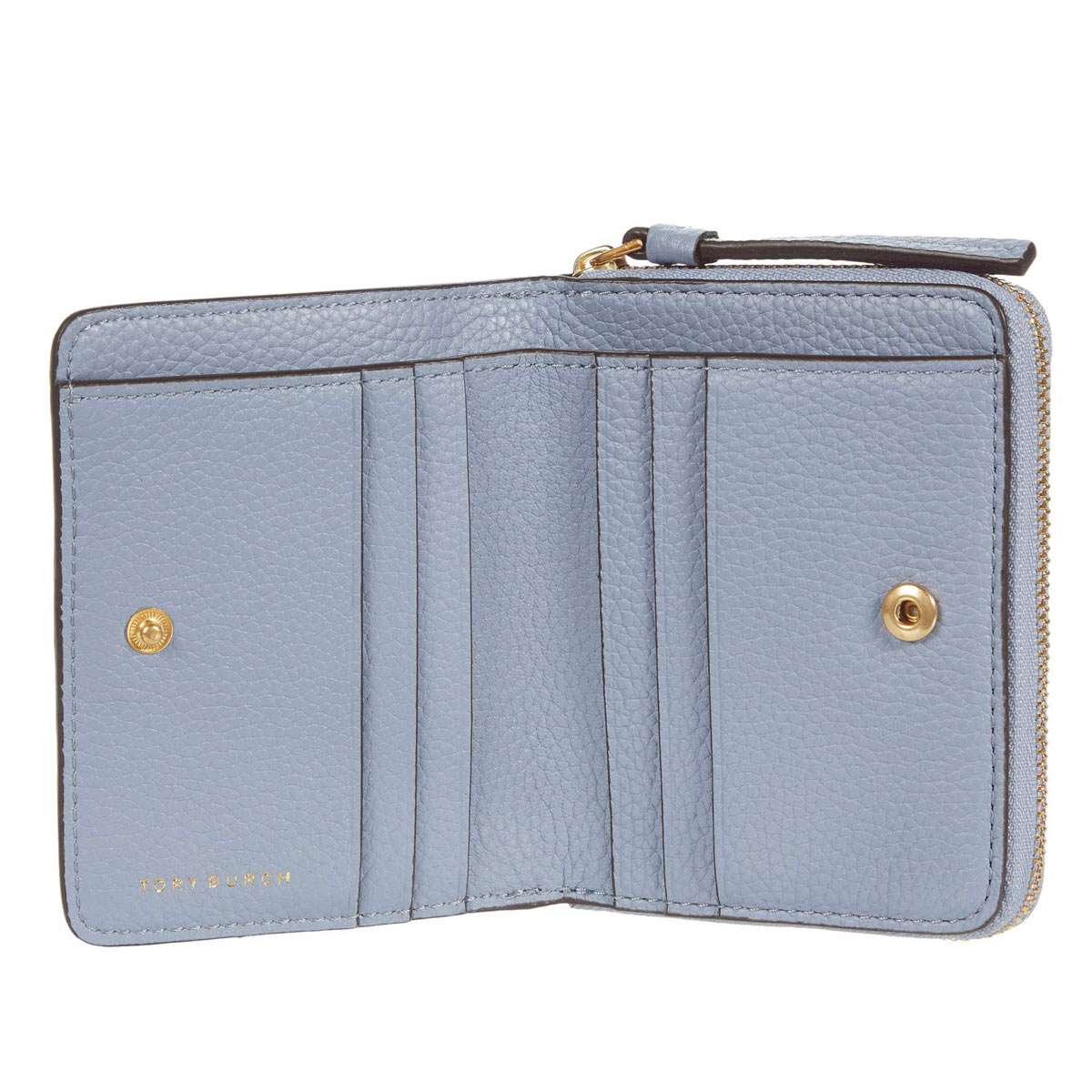 ■商品名 トリーバーチ マグロウ バイ-フォールド ウォレットTory Burch MCGRAW BI-FOLD WALLET ■カラー Cloud Blue ■素材 Durable pebbled leather ■商品詳細 ・サイズ(約):縦9.3cm x 横11cm・ピンスナップ開閉・外側:ジッパーポケットx1・内側:カードスロットx6、お札入れx1 ■ 商品説明 ペブルドレザーを使用した「McGraw Bi-Fold Wallet」は、手作業で縫製されたダイカットのダブルTと縦のピックステッチが特徴です。